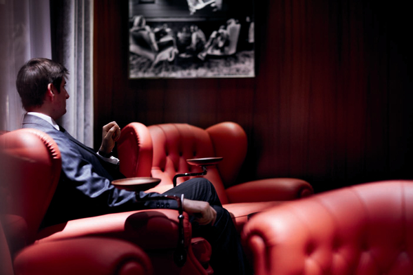 Pour les espaces de restauration et bar, on fuit là encore les conventions. Long comptoir haut pour le bar et la cour intérieure, abats-jours surdimensionnés pour la table japonaise Matsuhisa, et plafonnier recouvert de coquillages pour la table italienne étoilée Il Carpaccio où officiait il y a peu le chef Roberto Rispoli (à voir si après son départ, le Guide Michelin conserva l'étoile).